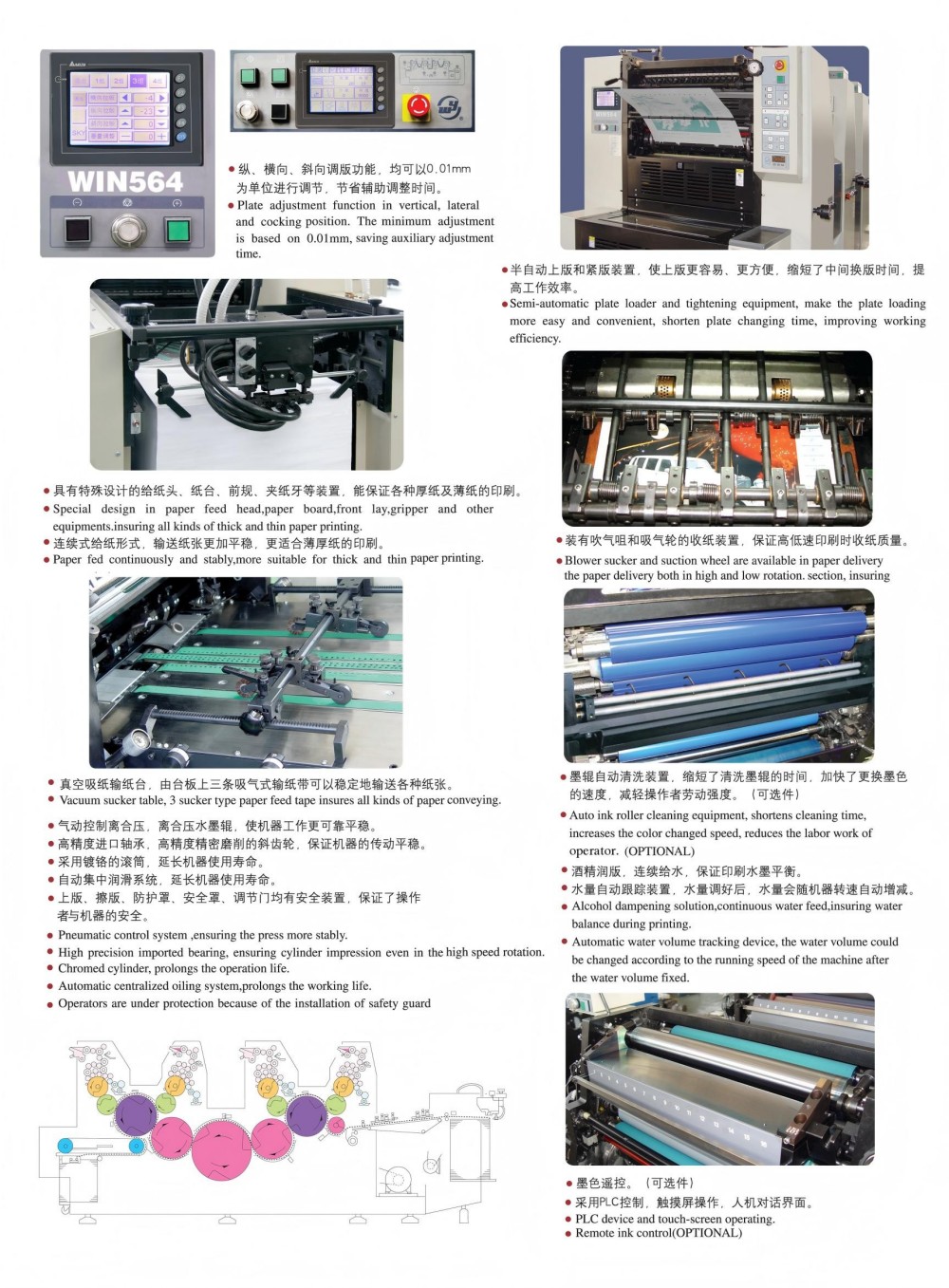 A2-offsettrykpressen til fire farver er designet med højtydende moduler, og de er alle af topkvalitet - højpræcisionsruller og -tandhjul, en stærk papirfremføringsmekanisme, et højpræcisionspapirregistreringssystem og et stabilt blækforsyningssystem. Den er skræddersyet til at imødekomme markedets krav til farveudskrivning af skæreark, der er høj kvalitet, effektiv og overkommelig. Du behøver heller ikke kun at holde dig til én papirtykkelse – det fungerer med tyndt papir (0,04 mm) helt op til tykt pap (0,4 mm). Der er også en touchscreen-kontrol med en intuitiv programmeringsgrænseflade, som lader dig justere indstillinger og udskrivningsparametre på en smart og ligetil måde.