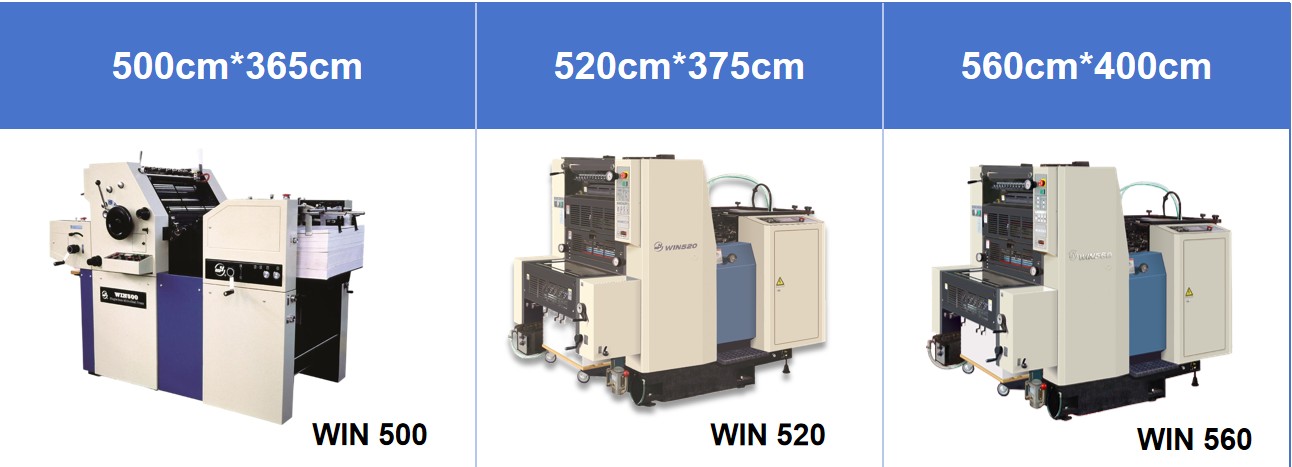 Vores ensfarvede offsetpresser er opdelt i 3 hovedmodeller efter trykpapirstørrelse:
